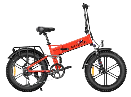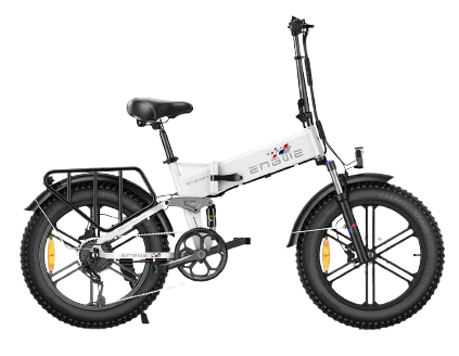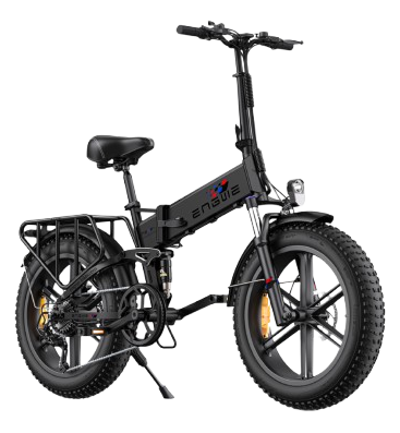 ENGWE Engine X – ein faltbares E-Bike mit 250 W Motor, 48 V 13 Ah Akku und einer Reichweite von bis zu 120 km. Vollfederung, 20×4″ Fat-Reifen, 150 kg Traglast, LED-Beleuchtung, Shimano 7-Gang-Schaltung.