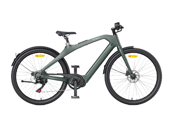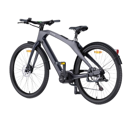 Städtisches Elektrofahrrad der neuen Generation mit Carbonrahmen, Ananda-Mittelmotor (250 W, 80 Nm), Drehmomentsensor, GPS/4G-Smartfunktionen und hydraulischen Bremsen. Schnelles Aufladen und eine Reichweite von bis zu 100 km machen das ENGWE N1 Pro zur idealen Lösung für moderne Stadtfahrer.