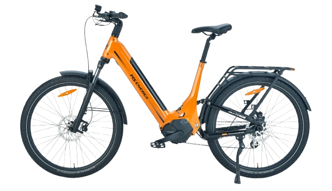 Das Herzstück des Fahrrads ist der Mittelmotor Ananda M60 mit einer Nennleistung von 250 W und einem Drehmoment von 70 Nm, der genügend Kraft auch für steile Anstiege bis zu 20 % bietet. Der Motor ist für einen reibungslosen Betrieb optimiert und sorgt zusammen mit dem Drehmomentsensor für ein natürliches Fahrgefühl – je stärker der Fahrer tritt, desto mehr Unterstützung liefert der Motor. Der 48 V / 12 Ah Akku ist vollständig im Rahmen integriert, was sowohl die Optik als auch den Schutz vor Witterungseinflüssen verbessert. Im Eco-Modus lässt sich eine Reichweite von bis zu 120 km erzielen, im Maximalmodus ca. 70–80 km. Das vollständige Aufladen dauert 4–6 Stunden, sodass das Fahrrad ohne lange Wartezeiten für den täglichen Gebrauch bereitsteht. Die Höchstgeschwindigkeit ist auf 25 km/h begrenzt, womit das Modell zu den in der EU legal nutzbaren E-Bikes gehört.