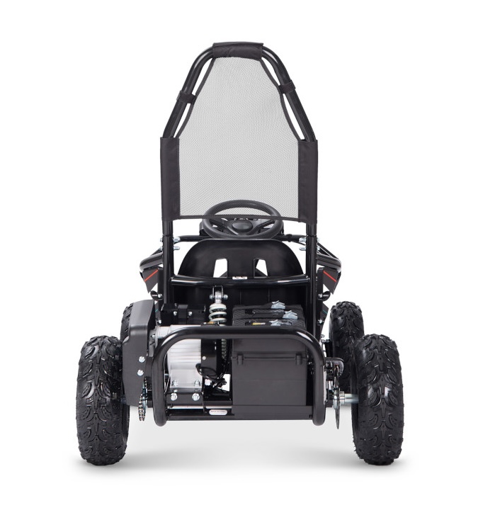 Eines der wichtigsten Merkmale des LAMAX eBuggy UTV50 Long Range ist der Fokus auf Sicherheit. Eine hydraulische Scheibenbremse an der Hinterachse sorgt für zuverlässiges Anhalten auch bei einer maximalen Geschwindigkeit von 30 km/h, was im Gelände entscheidend ist. Drei Geschwindigkeitsmodi 10 / 20 / 30 km/h ermöglichen es den Eltern, die Leistung an die Fähigkeiten des Kindes anzupassen, auch durch Verriegelung, um zu schnelles Fahren zu vermeiden. Stabilität wird durch hochwertige Reifen und Federung unterstützt, die das Risiko von Stößen und Kontrollverlust verringern. Der 1000 W Motor liefert genügend Leistung, um leichte Steigungen und Unebenheiten zu bewältigen, während die Energie von einer 48 V / 20 Ah Bleiakku bereitgestellt wird. Diese bietet eine Reichweite von bis zu 30 km oder etwa 4 Stunden Fahrt unter idealen Bedingungen. Der Hersteller weist jedoch darauf hin, dass die Reichweite im realen Betrieb – bei höherem Fahrergewicht, häufigem Starten oder Bergauffahrten – niedriger sein kann, in einigen Fällen bis zu 50 %. Trotzdem handelt es sich um eine sehr solide Leistung im Vergleich zur Konkurrenz. Dank des verstellbaren Sitzes, Sicherheitsgurtes sowie Vorwärts- und Rückwärtsfahrt ist die Bedienung des Buggy auch für weniger erfahrene Fahrer intuitiv und sicher.