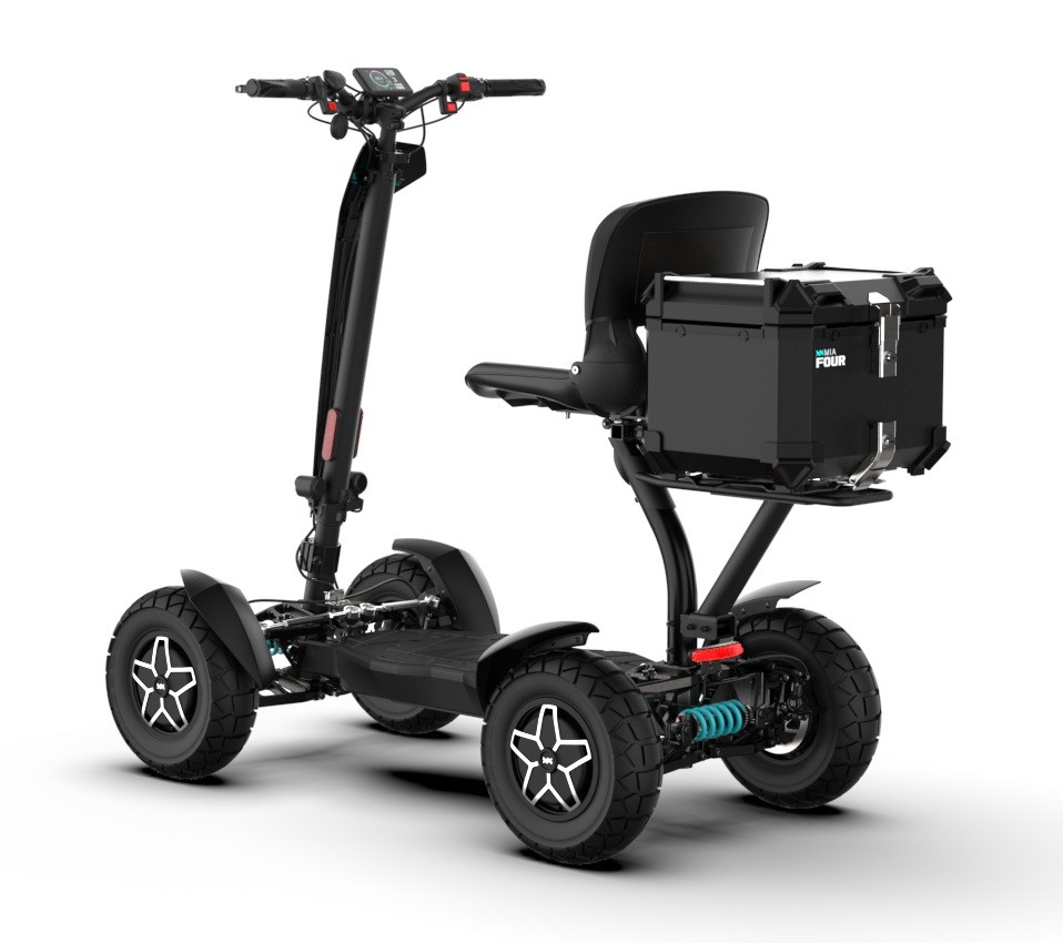 MIA Four X4 (4×4) – der revolutionäre Elektroroller mit Allradantrieb, 7200 W Leistung, bis zu 120 km Reichweite und einer robusten 60 V / 35 Ah Batterie. Zuverlässig, leistungsstark und bereit für jedes Gelände.