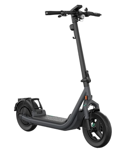Der Egret GT ist als universeller Scooter für den täglichen Einsatz konzipiert. Dank der hohen Tragfähigkeit von 150 kg ist er ideal für große, schwerere oder besonders anspruchsvolle Fahrer sowie für alle, die einen stabilen und zuverlässigen Rahmen erwarten. Seine 13"-Reifen sind außergewöhnlich stabil und widerstandsfähig, während die Stahlverstärkung im Inneren das Pannenrisiko reduziert. Das Gewicht von 32,3–33,2 kg zählt ihn zwar zu den schwereren Scootern, spiegelt jedoch die robuste Bauweise und hohe Fahrstabilität wider. Die Wartung ist unkompliziert – hydraulische 160-mm-Scheibenbremsen müssen nicht häufig nachjustiert werden, die Federung ist langlebig und der Akku kann einfach gegen einen zweiten getauscht werden, was die Nutzungsdauer erheblich verlängert. Der Scooter lässt sich bequem im Auto transportieren oder in Innenräumen lagern, da der Klappmechanismus schnell und intuitiv ist. Dank der IPX5 / IPX7-Schutzklasse ist er auch für Fahrten im Regen geeignet. Wer lange Strecken fährt, profitiert besonders von der Möglichkeit, einen zweiten Akku zu kaufen und ihn unterwegs schnell zu wechseln. Smart-Funktionen wie Alarm, NFC und Wegfahrsperre sowie Find My machen ihn auch in Städten mit höherem Diebstahlrisiko zu einem sicheren Verkehrsmittel.