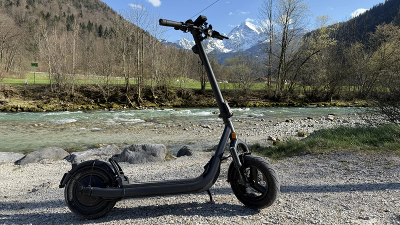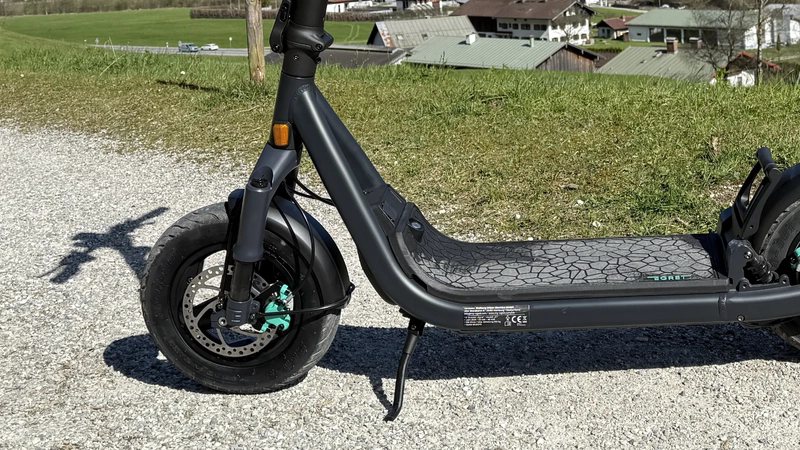 Der Egret GT überzeugt mit seinem robusten und zugleich modernen Design. Im ausgeklappten Zustand misst er 136 × 67 × 128 cm, im zusammengeklappten Zustand nur 136 × 60 cm, was die Handhabung und Lagerung deutlich erleichtert. Das Trittbrett mit großzügigen 17 × 46 cm bietet einen stabilen Stand und verbirgt zugleich den schnell wechselbaren Akku – eines der praktischsten Features dieses Modells. Die doppelte Federung – vordere ölgedämpfte Upside-down-RST-Gabel mit 5 cm Federweg und ein hinterer verstellbarer Dämpfer – sorgt für Komfort auch auf unebenem Untergrund. Der Scooter ist mit 13"-Reifen mit Stahl-Pannenschutz ausgestattet, die die Stabilität bei höheren Geschwindigkeiten erhöhen. Die Beleuchtung ist premium: OSRAM LED vorne mit 80 Lux, hinteres LED-Licht mit Bremsfunktion sowie integrierte Blinker vorne und hinten. Die Bedienung wird durch ein 3,5" TFT-Display ergänzt, das Geschwindigkeit, Akkukapazität, Fahrmodus und Blinker klar anzeigt. Zu den nützlichen Funktionen gehören auch NFC-Entriegelung, ein elektronischer Alarm, eine Wegfahrsperre sowie die Kompatibilität mit Apple Find My, wodurch das Diebstahlrisiko deutlich reduziert wird. Die Wasserfestigkeit IPX5 für den Scooter und IPX7 für den Akku unterstreicht die außergewöhnliche Robustheit des gesamten Systems.