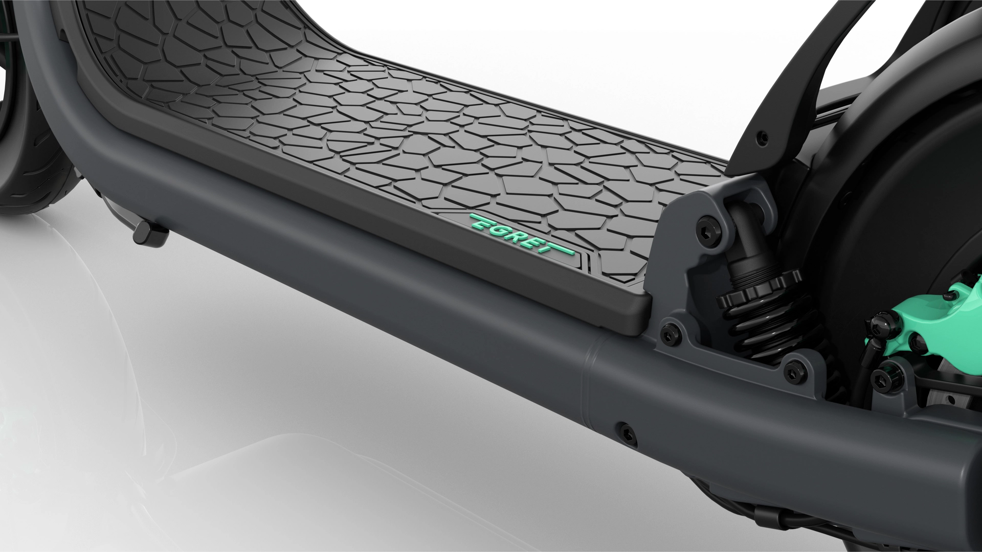Der Egret GT wird von einem Motor mit einer Spitzenleistung von 1.620 W angetrieben, der eine beeindruckende Beschleunigung liefert und auch bei anspruchsvollem Terrain oder höherer Belastung für stabile Fahrten sorgt. Das Drehmoment von 62 Nm gewährleistet kraftvollen Antritt am Berg und schnelle Reaktionen auf die Eingaben des Fahrers. Der Akku unter dem Trittbrett verfügt über eine Kapazität von 15 Ah oder 20 Ah bei einer Spannung von 47,45 V, was eine Reichweite von 75 km mit dem kleineren Akku und bis zu 100 km mit dem größeren ermöglicht. Das Laden dauert nur 5 Stunden über ein 3-A-Ladegerät – ideal für den Alltag. Dank der 13"-Reifen und der doppelten Federung – vorderes RST mit 5 cm Federweg und hinterer verstellbarer Dämpfer – bleibt die Fahrt auch bei höheren Geschwindigkeiten komfortabel. Die Leistung hat der Fahrer dabei vollständig unter Kontrolle über das hochwertige 3,5" TFT-Display, das alle notwendigen Werte für eine sichere und flüssige Fahrt anzeigt.
