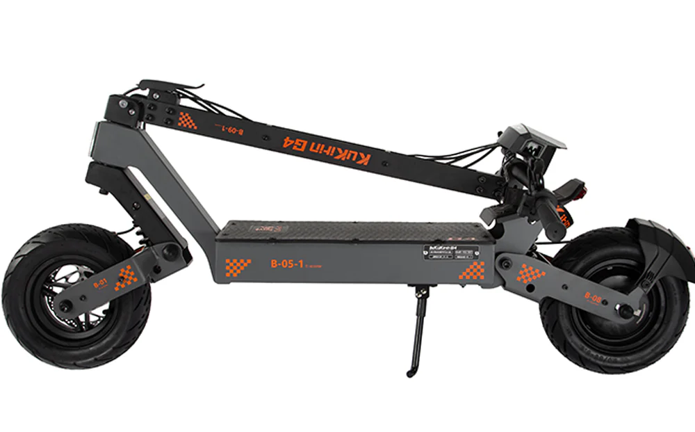 Das Design des KuKirin G4 kombiniert sportliches Aussehen mit funktionalen Elementen. Die robuste Konstruktion und die 11"-breiten Tubeless-Reifen bieten hervorragende Stabilität und Grip auf unebenem Gelände. Die vorderen und hinteren Federungen erhöhen den Fahrkomfort und reduzieren unangenehme Vibrationen, sodass das Fahren auch bei höheren Geschwindigkeiten sanft bleibt. Die umfangreiche Ausstattung umfasst LED-Front- und Rücklichter, integrierte Blinker, Ambientebeleuchtung, Touchscreen-LCD für Geschwindigkeit, Batteriestatus und gefahrene Kilometer sowie drei Fahrmodi (ECO, Normal, Sport) zur Leistungsanpassung. Die Zündung mit Schlüssel erhöht den Diebstahlschutz, während der stabile Ständer und Schutzbleche die Alltagstauglichkeit erhöhen. Das gesamte Rollerkonzept ist professionell, langlebig und bereit für Herausforderungen – ideal für Fahrer, die mehr als einen einfachen Stadtscooter suchen.