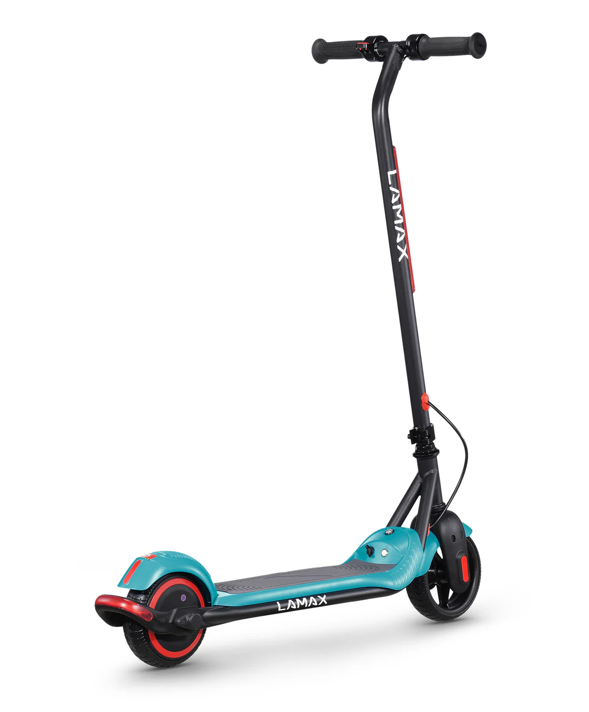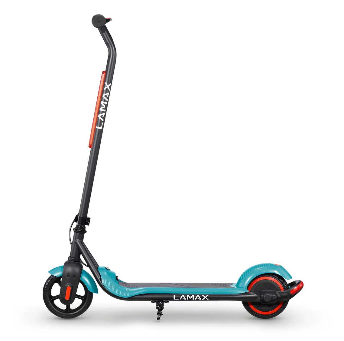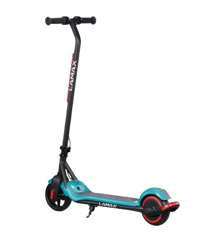 Elektroroller für Kinder LAMAX eFlash SC20 mit 150 W Leistung, einer Höchstgeschwindigkeit von 15 km/h, 15 km Reichweite und einer Tragfähigkeit von 60 kg. Leicht, sicher und mit LED-Beleuchtung ausgestattet.
